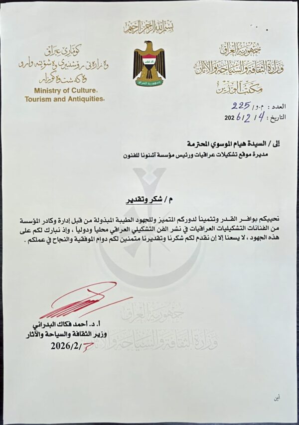نَفْتَخِرُ بأن نكون مُمَثِّلِينَ وسُفَراءَ لمهرجان قطر الدولي (كتارا) في العراق ، حاملين رسالة الفن والثقافة بكل فخر واعتزاز لنقدّم رؤية تُثري المشهد الثقافي الفني بين البلدين الشقيقين .