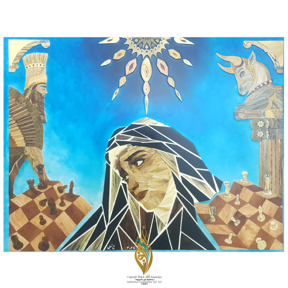 About the work: When cubism and modern fractures collide and merge with the margin of antiquity and the harshness of forgotten time, this painting recalls a basic element of ancient and modern life, which is the steadfast and silent nation in all life’s circumstances…and the mother is the source and foundation of all peoples and nations throughout history… .